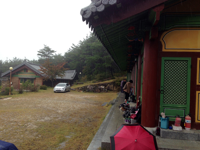 비 내리는 법당 앞 마당