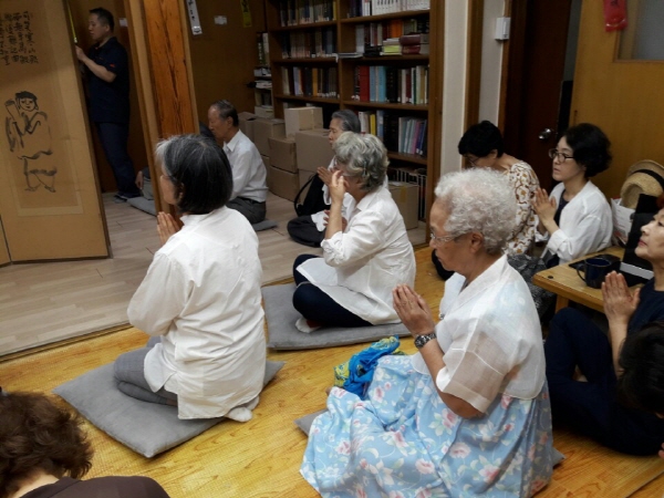 증명단 예불 올리는 중