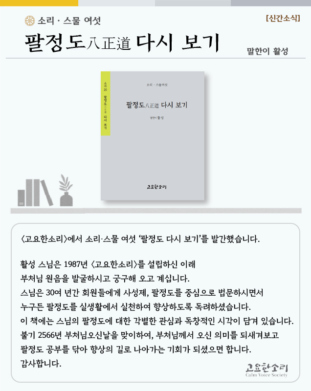 [신간 소식] 소리·스물 여섯 ‘팔정도 다시 보기'