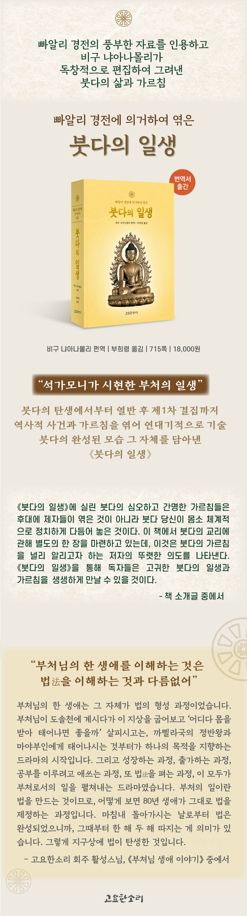 [신간] 빠알리 경전으로 엮은 '붓다의 일생' 출간 관리자 2023-02-24 조회수 : 1838 첨부파일: 붓다의-일생-홍보.jpg ▶책 주문은 고요한소리 홈페이지를 이용해주시거나 각종 온라인 서점(교보문고, 예스24, 알라딘)에서도 구입하실 수 있습니다.^^