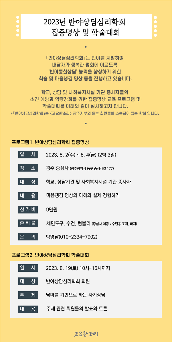 [광주지부 소식] 반야상담심리학회 집중명상 및 학술대회