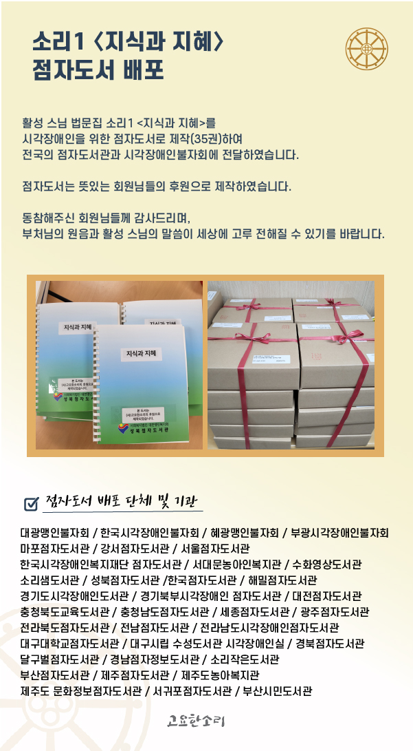 소리1 <지식과 지혜> 점자도서 제작 및 배포