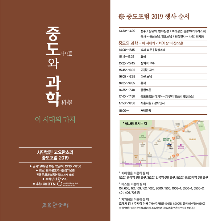 〈고요한소리〉 중도포럼 2019, ‘중도와 과학-이 시대의 가치’ 개최