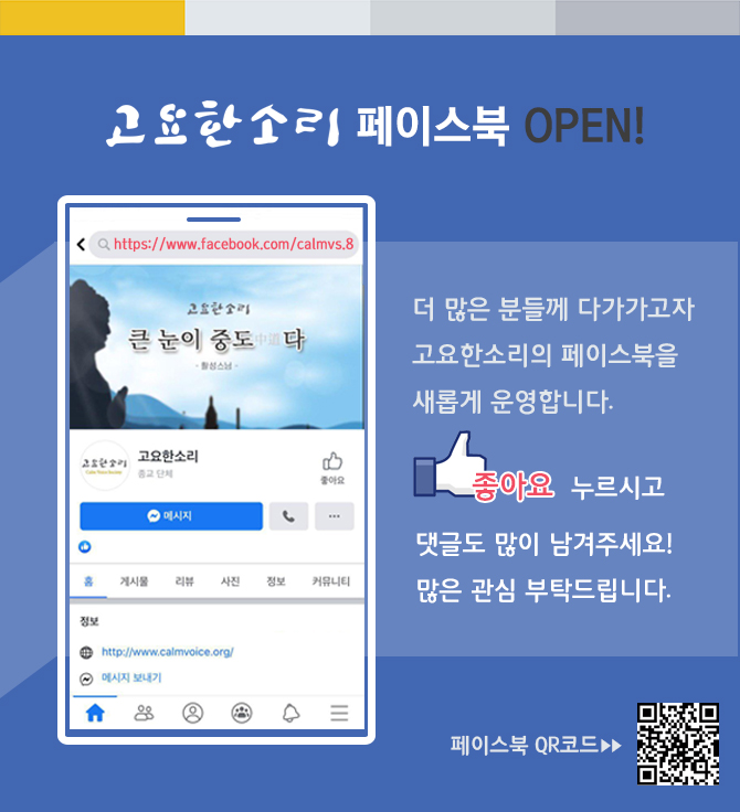 고요한소리가 더 많은 분들께 닿고자 페이스북을 새롭게 운영합니다.